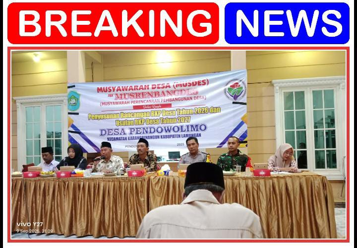Anggota polsek Karangbinangun menghadiri acara kegiatan penyusunan Rancangan RKP Desa tahun 2026 dan usulan RKP desa tahun 2027 yang dilaksanakan di pendopo kecamatan Karangbinangun kabupaten Lamongan, rabu 10 September 2025.