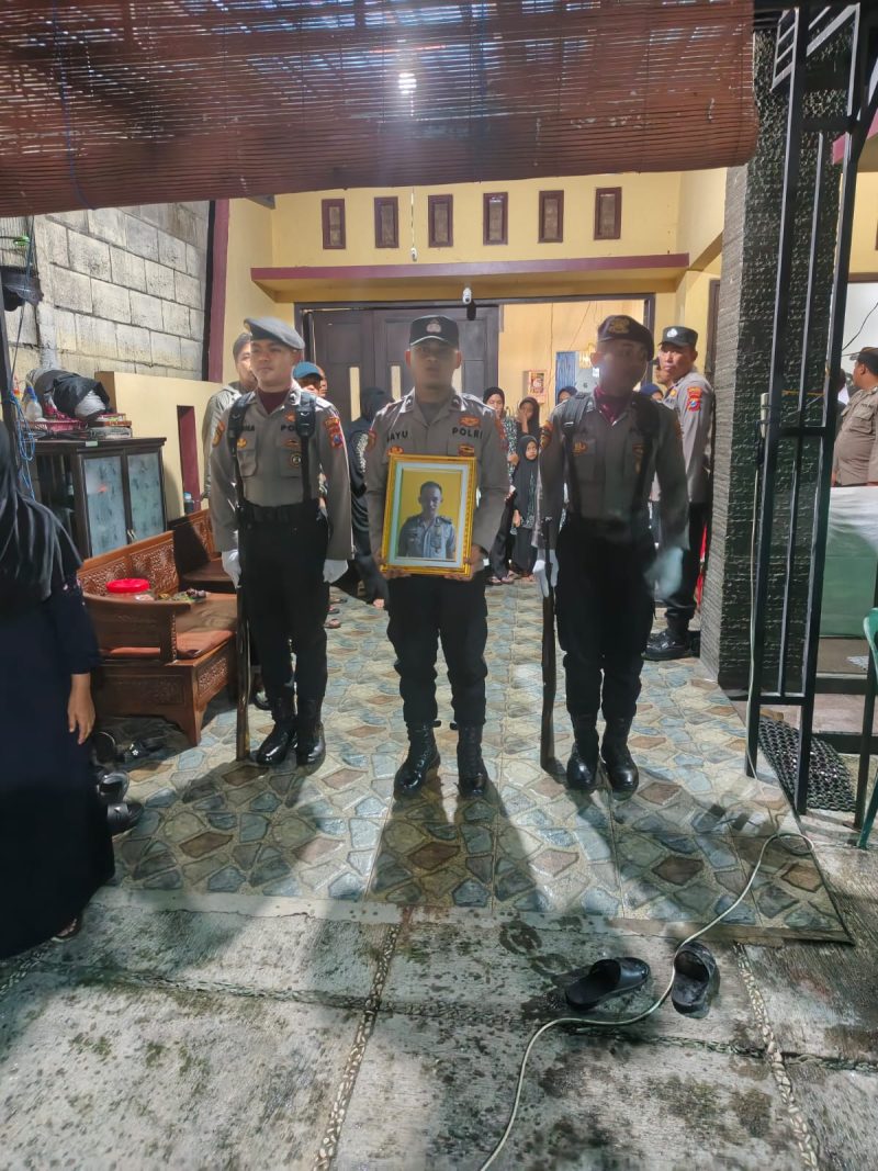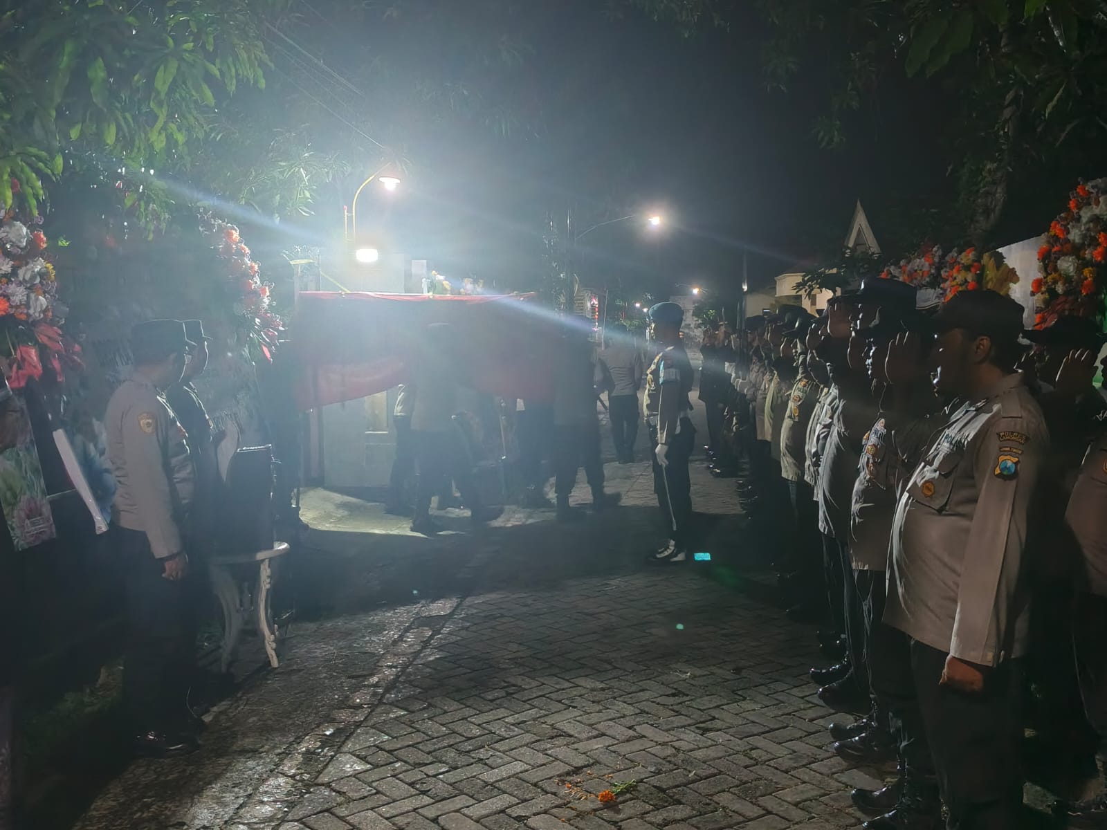 Bahwa upacara pemakaman anggota polri An. BRIPKA RINGGA DIORIVO, SH. anggota Sat Reskrim Polres Bondowoso dilaksanakan di rumah kediaman orang tua almarhum yakni di Jl. Sultan Agung, No. 5, RT 01, RW 05, Desa/Kec. Sukodadi, Kab. Lamongan., Bahwa Almarhum meninggal dunia pada hari Rabu tanggal 12 Nopember 2025, pukul 15.10 Wib di RS MITRA MEDIKA Bondowoso karena sakit jantung, dan dimakamkan di TPU Desa / Kec. Sukodadi., Bahwa Almarhum meninggalkan 1 ( satu ) orang anak perempuan yang saat ini dirawat oleh orangtua almarhum, Adapun anggota Polres Bondowoso.