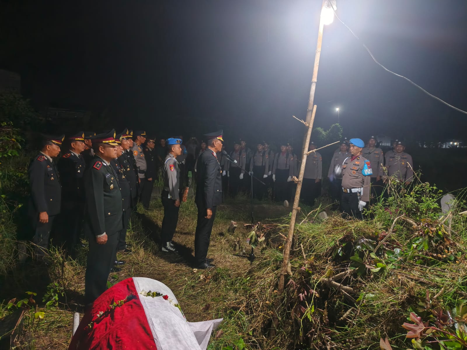 Dan selama kegiatan Pukul 23.30 Wib giat upacara pemakaman telah selesai dilaksanakan, berjalan dengan tertib dan lancar.”Tutupnya.