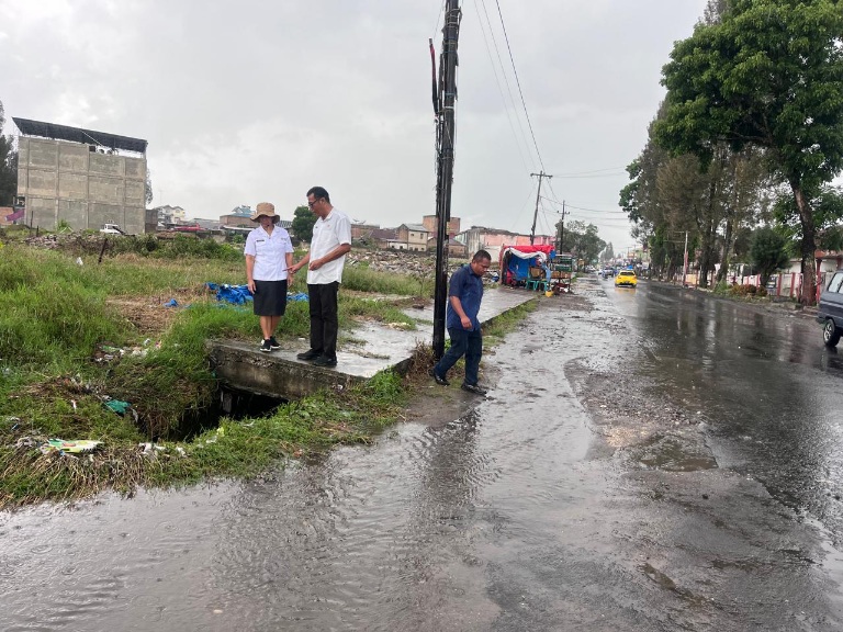 Meski cuaca masih diguyur hujan deras, Kepala Dinas PUTR Kabupaten Karo, Edward P. Sinulingga, turun langsung ke lapangan untuk memimpin pengecekan drainase yang tersumbat di sejumlah titik lokasi. Didampingi tim teknis, beliau menyisir area terdampak guna memastikan penyebab utama air meluap ke badan jalan dan segera menentukan langkah penanganan yang efektif.