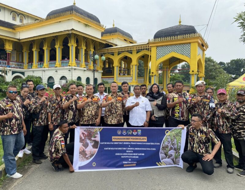 Kali ini, Selasa (9/9/2025) Kanwil Ditjenpas Sumut menggandeng PC Generasi Muda Forum Komunikasi Putra Putri Purnawirawan dan Putra Putri TNI Polri (GM FKPPI) 0201 Medan untuk melaksanakan penanaman pohon kelapa secara serentak.