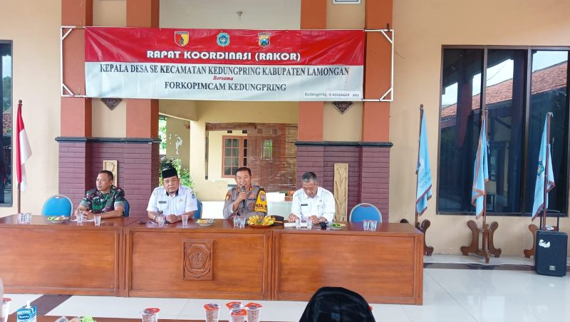 Sementara itu dalam sambutannya kapolsek kedungpring, AKP Sudibyo,S.H., saat melaksanakan rapat koordinasi bersama forkopimcam sedompring dalam kegiatan ini sebagai bentuk upaya komitmen anggota kepolisian kedungpring dalam memberikan pelayanan kepada masyarakat “terangnya.
