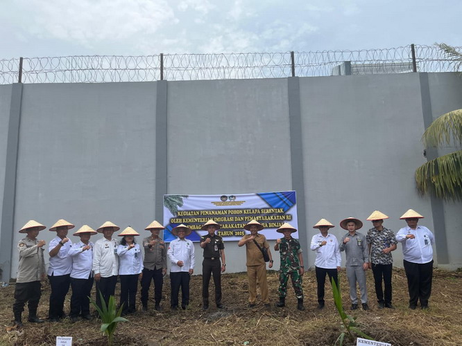 Binjai, 9 September 2025 – Lembaga Pemasyarakatan (Lapas) Kelas IIA Binjai melaksanakan kegiatan penanaman pohon kelapa serentak yang dipimpin langsung secara virtual oleh Menteri Imigrasi dan Pemasyarakatan Republik Indonesia, Jenderal Pol (Purn) Agus Andrianto, SH, MH dari Nusakambangan.
