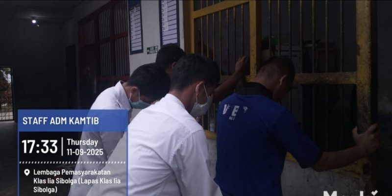 Sibolga – Lembaga Pemasyarakatan Kelas IIA Sibolga melaksanakan razia kamar hunian warga binaan pada Kamis (11/09/2025). Kegiatan ini dipimpin langsung oleh Kepala Kesatuan Pengamanan (Ka. KPLP) Ibnu Taqwim bersama jajaran pengamanan.
