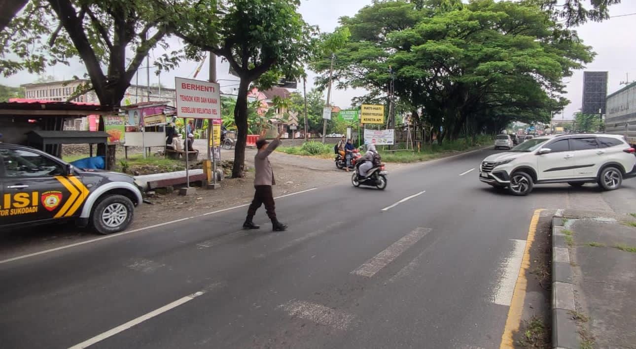 Polsek Sukodadi polres lamongan telah melaksanakan giat patroli pengaturan lalu lintas pagi untuk memberikan pelayanan terhadap masyarakat antara lain kegiatan penyebrangan masyarakat di simpang empat kawedanan desa Sukodadi kecamatan Sukodadi kabupaten lamongan, rabu 29 Oktober 2025 pukul 06:30 wib.