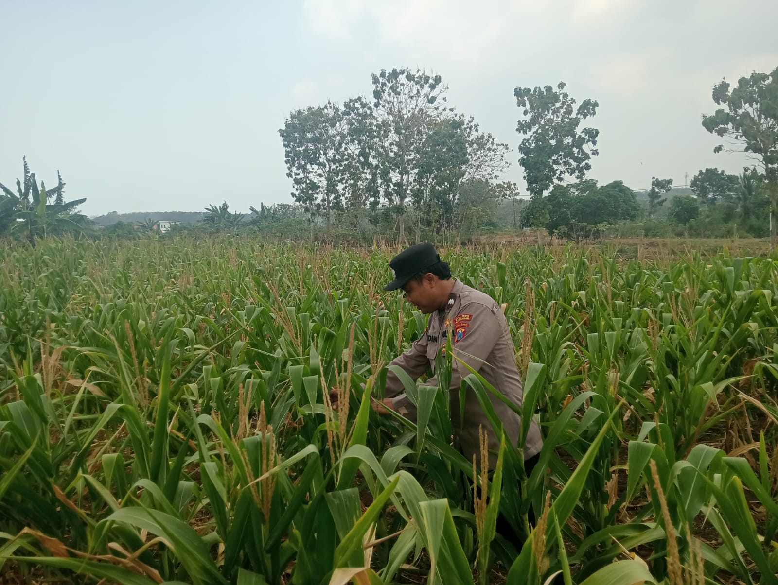 Anggota bersama Bhabinkamtibmas Polsek Brondong melaksanakan Pengecekan perkembangan tanaman jagung di Desa Brengkok Kec. Brondong Kab. Lamongan dalam rangka sosialisasi program Pekarangan bergizi (P2B) yang sesuai dg Asta Cita Bpk. Presiden dalam mewujudkan swasembada pangan nasional.