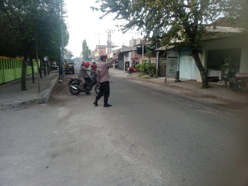 Dalam kesempatan patroli lalu lintas pagi ini petugas guna memberikan pelayanan terhadap masyarakat dengan humanis antara lain pelayanan penyebrangan masyarakat di sepanjang jalan wilayah kecamatan glagah kabupaten lamongan provinsi Jawa timur.