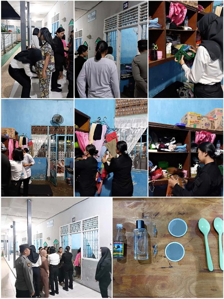 Proses pemeriksaan dilakukan secara menyeluruh, meliputi penggeledahan badan terhadap seluruh penghuni kamar dan pemeriksaan isi kamar hunian yang disaksikan langsung oleh warga binaan. Langkah ini dilakukan untuk memastikan tidak adanya barang-barang terlarang maupun benda berpotensi membahayakan di dalam blok hunian.